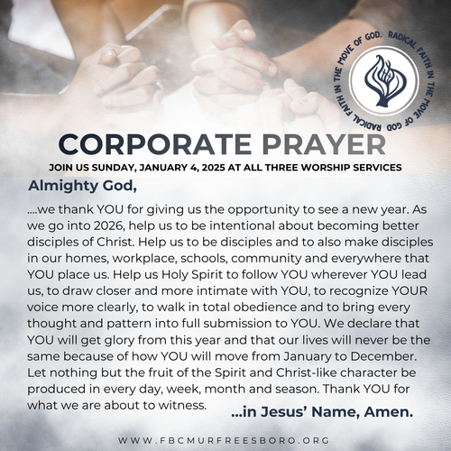 Join us this Sunday, January 4, 2026 at all services for Corporate Prayer, & prepare to walk with us through a Week of Prayer & Consecration next week.